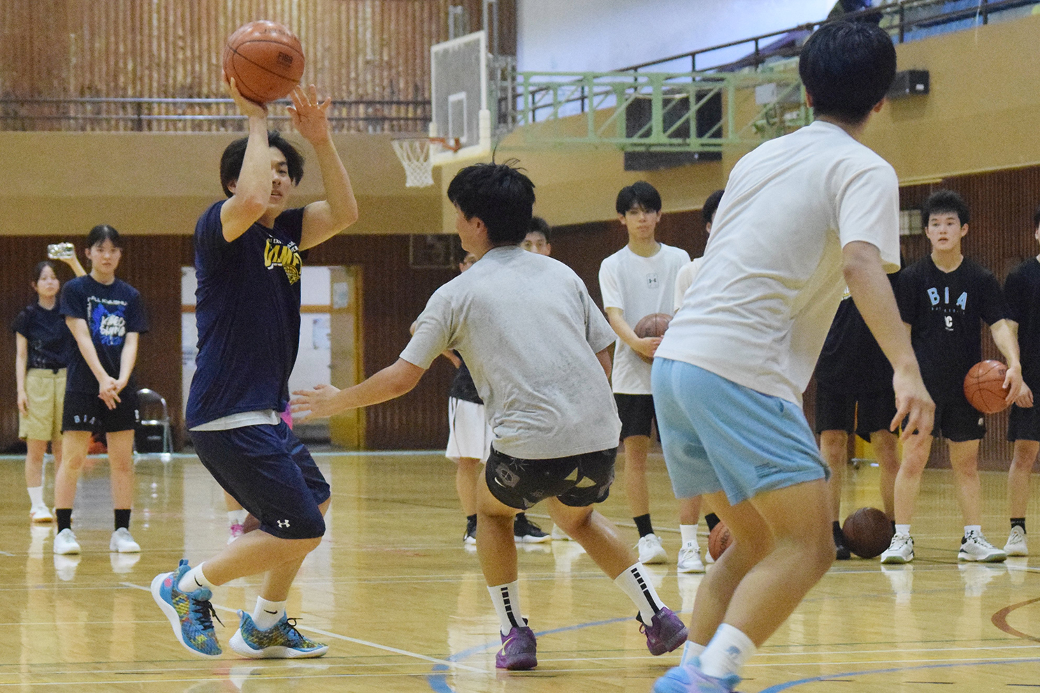 大島バスケ部男子の安田晴哉主将は「オープンショットに特化した練習で再認識できた。大高バスケ部にも取り入れたい」と話した。