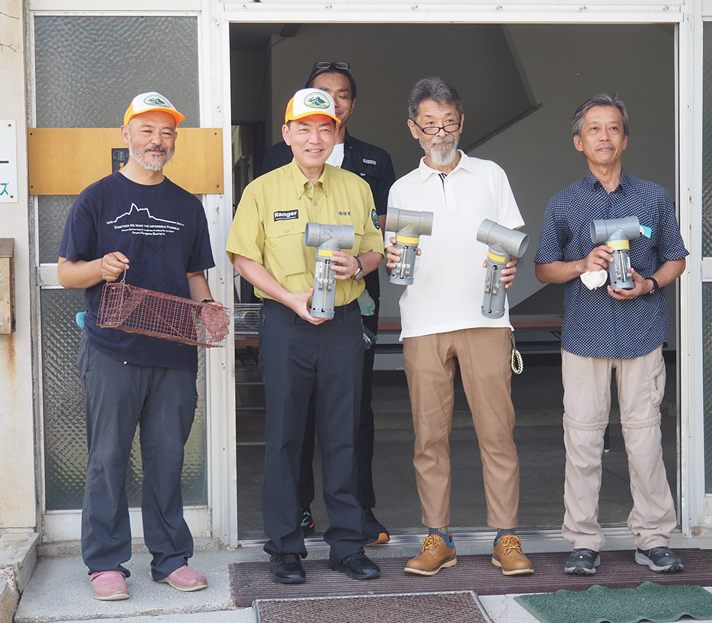 マングースバスターズのメンバーは現在、後藤義仁さん(50)、阿部愼太郎さん(61)、松田維さん(55)の3人。同バスターズは今年5月、千代田区の中央合同庁舎で開催された「2025年度『みどりの日』自然環境功労者環境大臣賞」を受賞した。