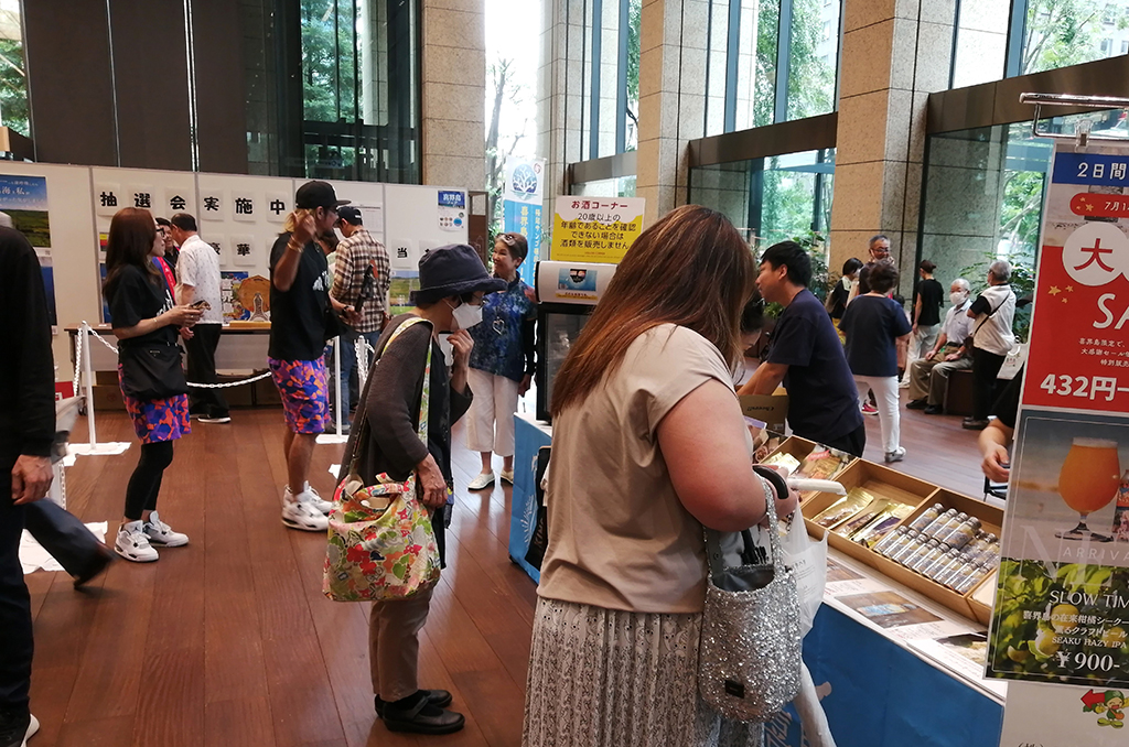 同イベントは、喜界町役場企画観光課が主催したもの。同町からは喜界町酒造㈱、㈱HOUBE、南村製糖が出店し黒糖焼酎やクラフトビール、黒糖製品などの販売を行った。折からの台風予報に「来場者が少ないのでは」との心配の声が聞かれたが、出身者や奄美ファンのほか、三井住友銀行職員ら多くの人でにぎわい、2日間で完売となった。