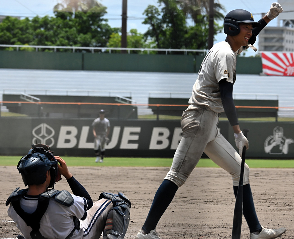 勝利を引き寄せたのは「攻める気持ち」(4番・碇山和尚・赤木名中卒)と「つなぐ野球」(湯田監督)だった。八回まで完璧な投球で鹿児島実打線を抑えていたエース伊藤が九回、先頭打者に特大ソロを打たれてから、勝ちを急ぎ、集中打を浴びて逆転を許した。