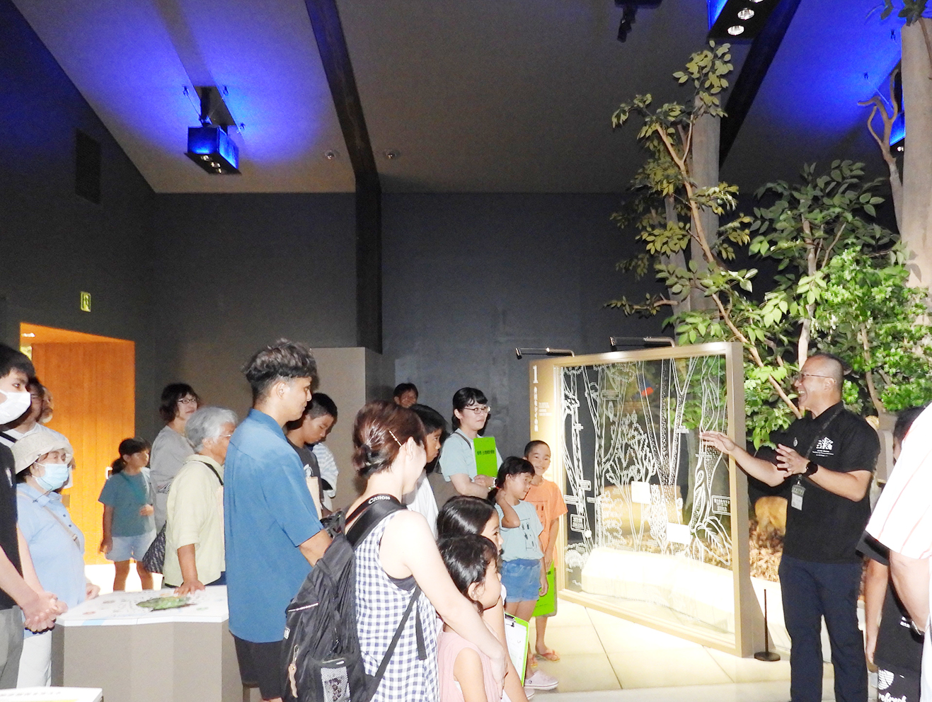 恒例となった遺産センター館内ツアーの午前の部には、親子連れなど24人が参加。森山和也事務局次長(44)の案内で、約30分の観覧を楽しんだ。