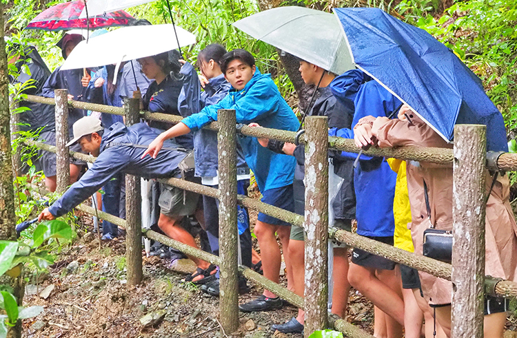 2025年度「二つの世界自然遺産“奄美・屋久島”自然体験型交流学習」(県環境林務部自然保護課奄美世界自然遺産室主催)は25~8月1日の8日間、徳之島、奄美大島、屋久島で実施している。奄美大島、徳之島、屋久島の高校生10人が参加し、島々をめぐり、さまざまな自然を体験し学ぶとともに交流を深めている。