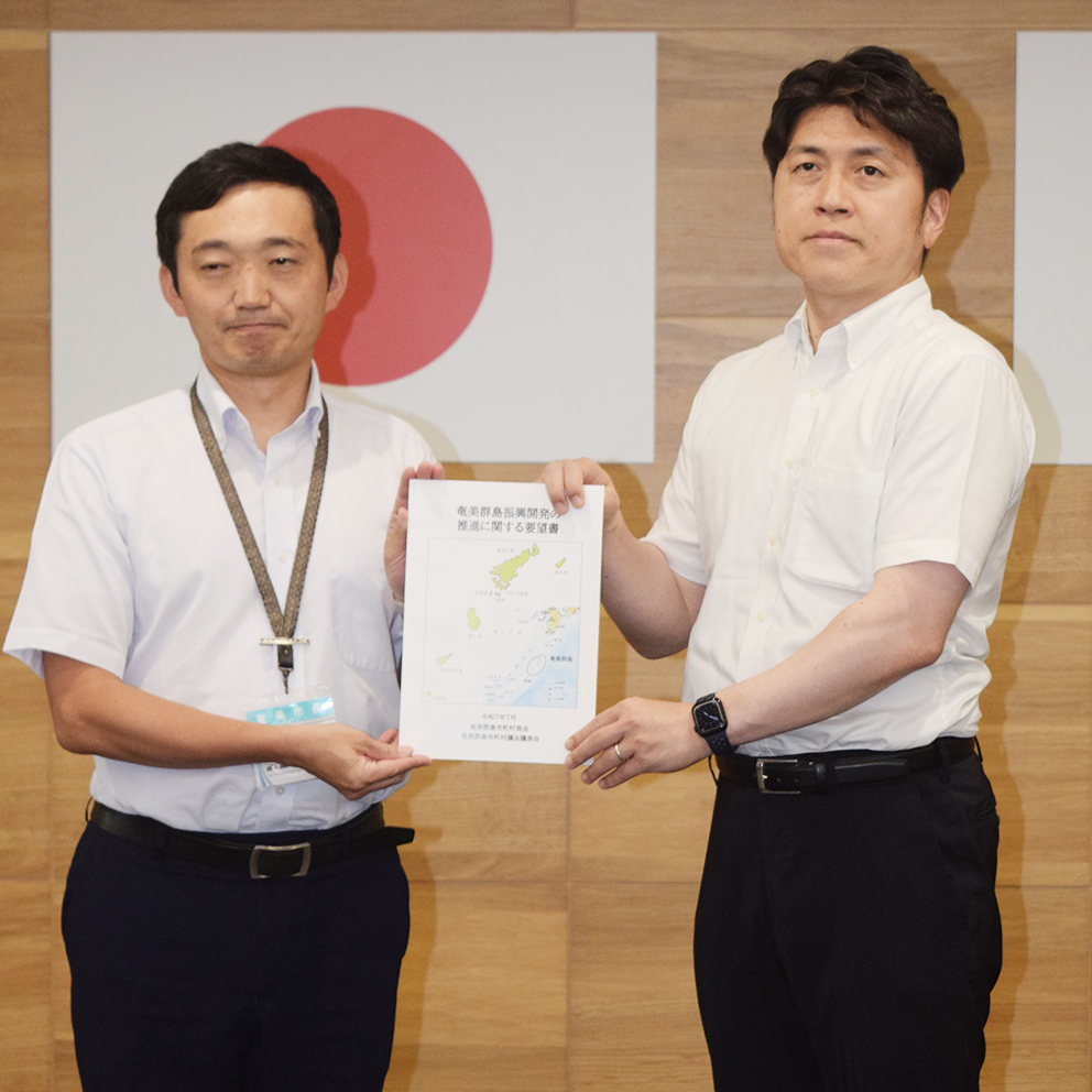 奄美市役所で行われた12市町村との会合では、藤本副知事、安田壮平奄美市長から奄美群島の開発推進に関わる要望者も提出された。あいさつした中野国交相は「奄美群島の振興に資するよう引き続き取り組む。地元のニーズや要望をしっかりと踏まえながら、必要な予算の確保、拡充に努めたい」と述べ、振興へ向けて意見を交わした。