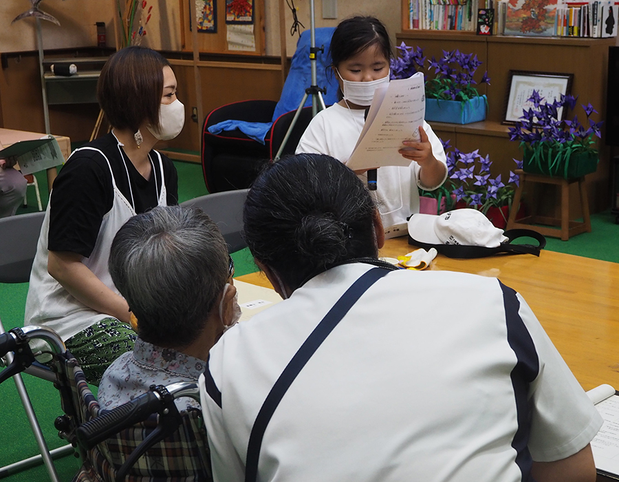 交流会では、同園職員と入所者の女性と懇談。入所時(当時小学5年生)のエピソードを、女性は「川遊びや山歩きなど、みんなと仲良く楽しく過ごした」と語り、今の子どもたちに伝えたいことを問われると、「家族や友達と仲良く助け合うとともに、勉強して弱い人を助けられる大人になって」と話した。