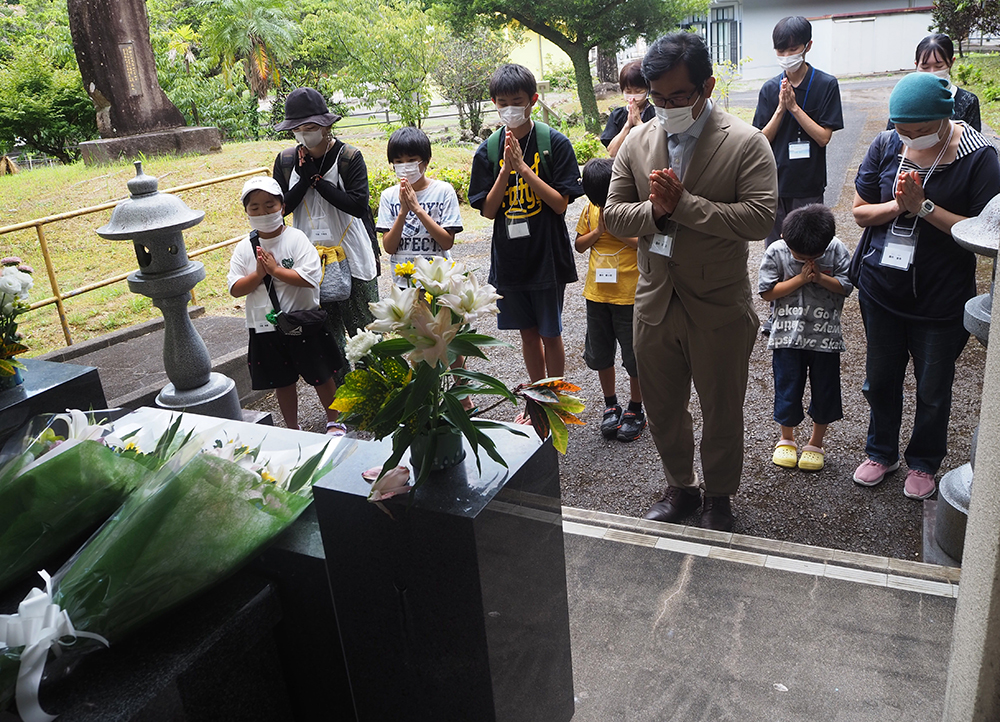 参加者らは納骨堂に献花し、408柱のみ霊に手を合わせた