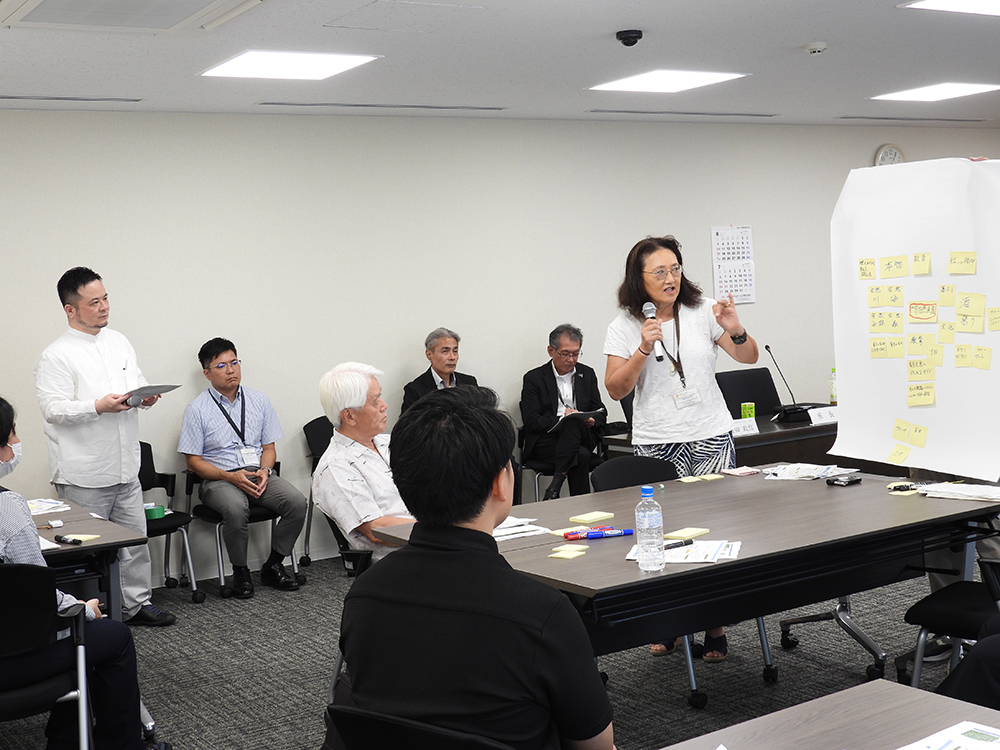 ワークショップは、「奄美らしさ」「つながり」を言語化する作業からスタート。教育・観光・自然など多様な分野から闊達(かったつ)な意見が交わされた。