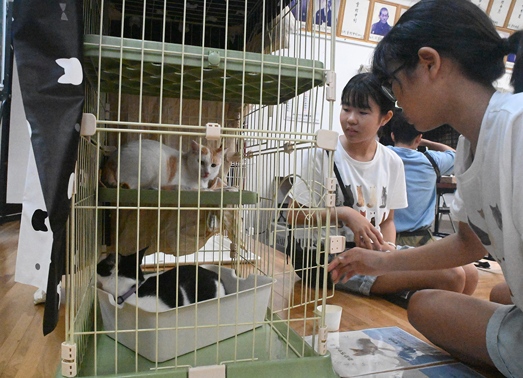 この日は、猫について知るミニ講座も開かれ、参加した子どもたちは、猫がほかの動物より強い繁殖力を持っている一方で子猫の生存率が低いことや、猫の殺処分を減らすために野良猫を捕まえ(Trap)、不妊・去勢手術をし(Neuter)、元の場所に戻す(Return)「TNR」活動の大切さを学んだ。
