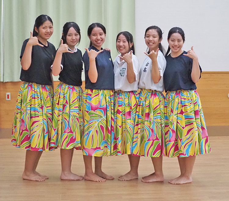瀬戸内町伊須にあるALOHA HULA AMAMI(アロハフラアマミ)教室の川崎雪子さん(64)が6人を指導。「6人は小さい頃から教室に通っている教え子たち。それぞれが自分の立場や状況をわきまえ、学んだことを忘れずに楽しんで踊ってくれたら」と語った。5月からそれぞれ練習を始めた6人は、8月に入ると毎日のように合同練習をしてきたという。大会には古高が10年ぶり、大高は初出場となる。
