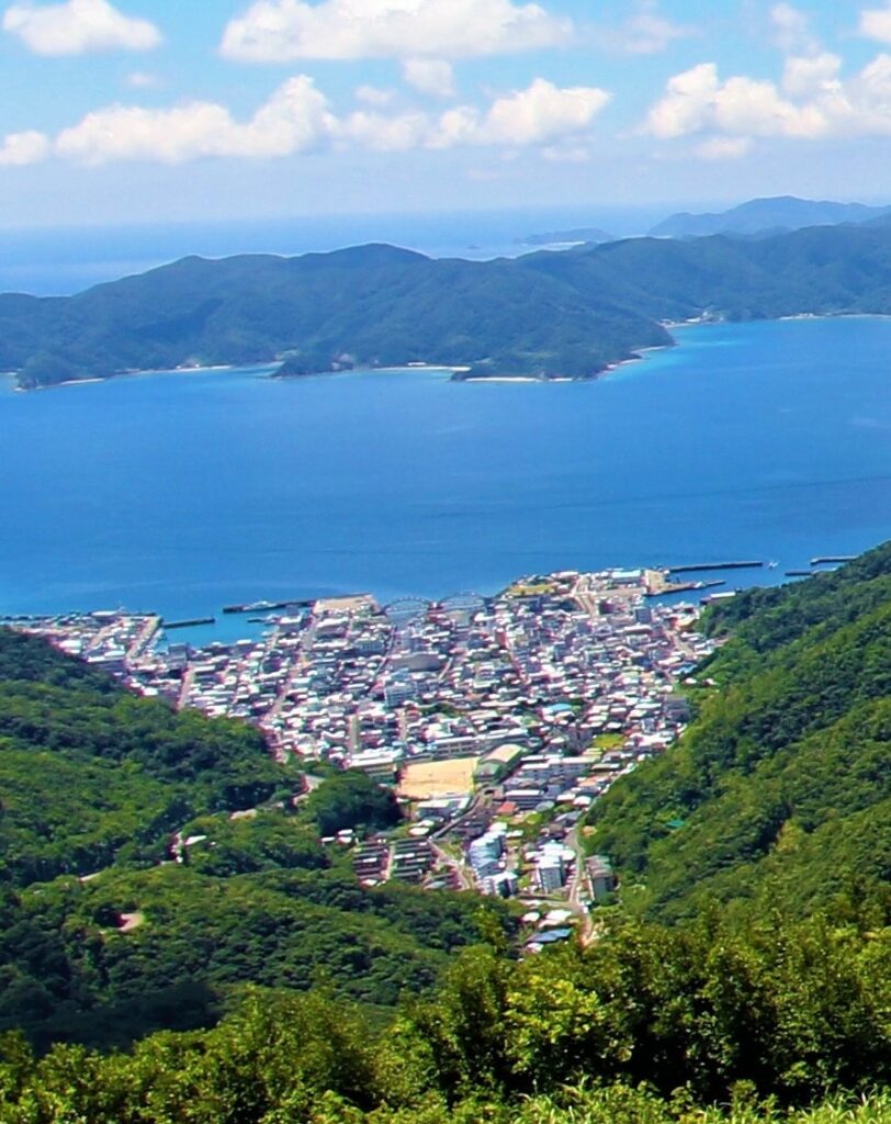 瀬戸内町の中心・古仁屋市街地から大島海峡を臨む