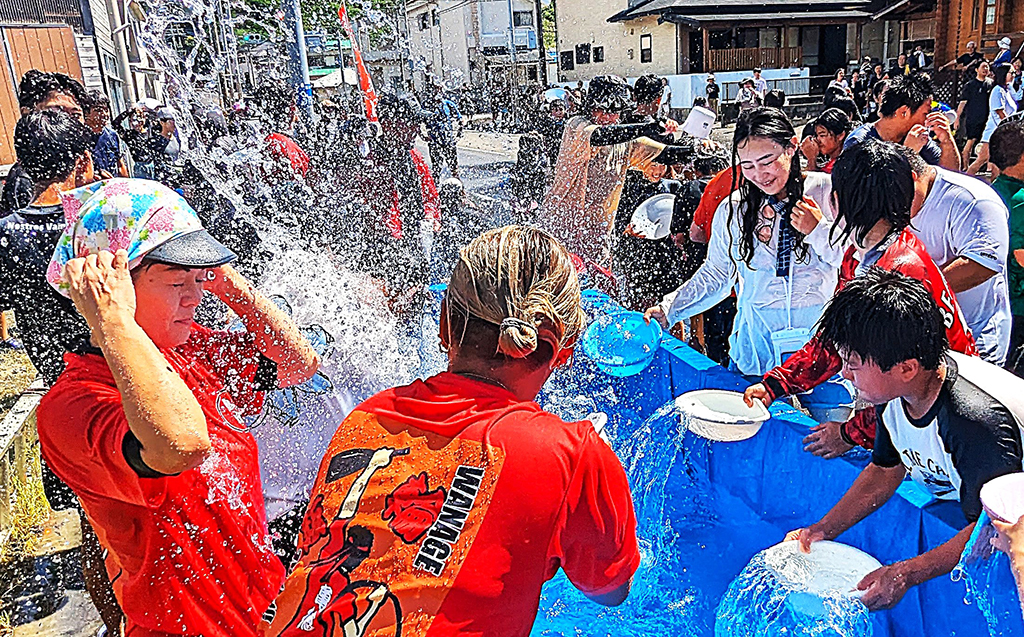 亀徳青年団(玉利祐希団長)の若者らがけん引役となって継続。残暑を吹き飛ばす〝水かけ遊び〟の娯楽的要素を強めながら継承されている。