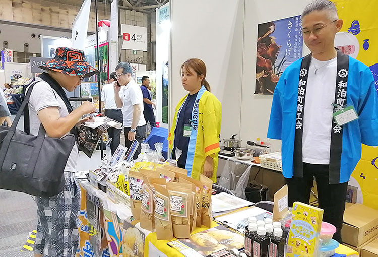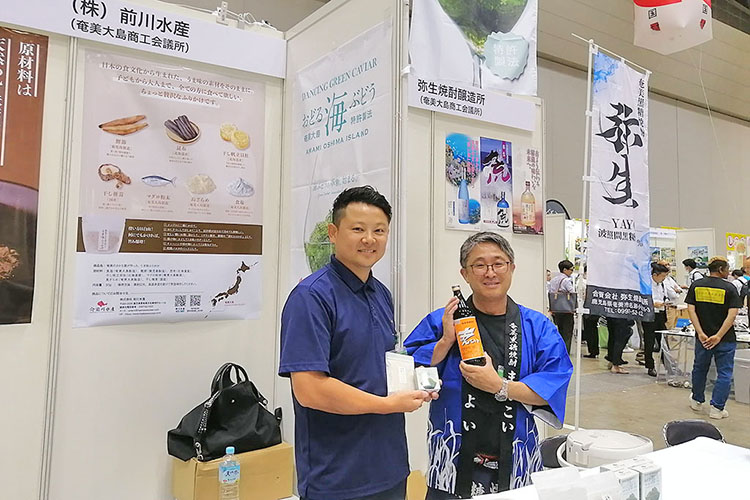 奄美の魅力的な加工食品をアピールするあまみ商工会と事業者ら