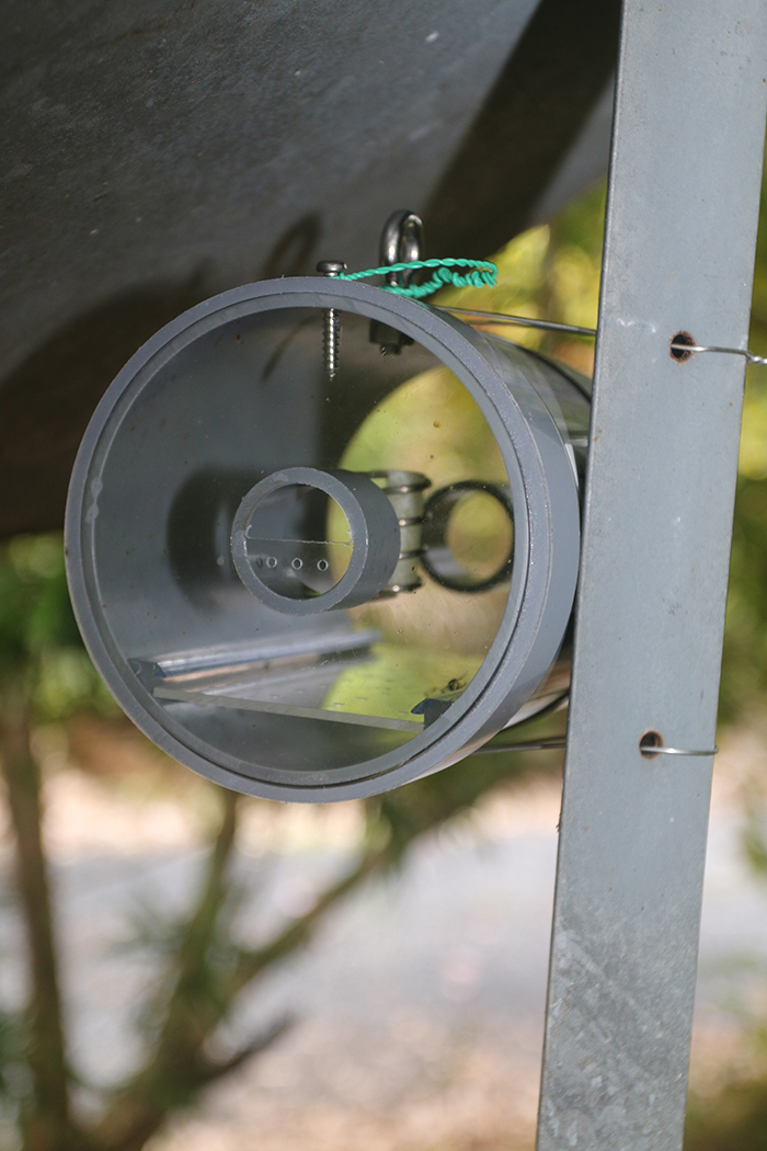 トラップ(わな)に設置される誘引剤はミカンコミバエ用に比べて強力性で差があるのが、セグロウリミバエの防除を難しくしている(資料写真)
