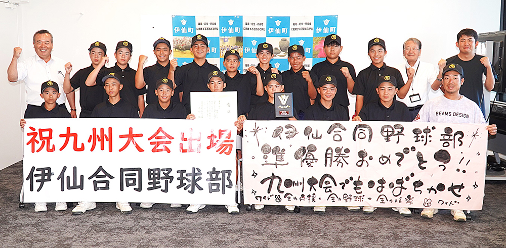 準優勝と九州大会出場を報告した伊仙合同中チーム=25日、伊仙町役場で