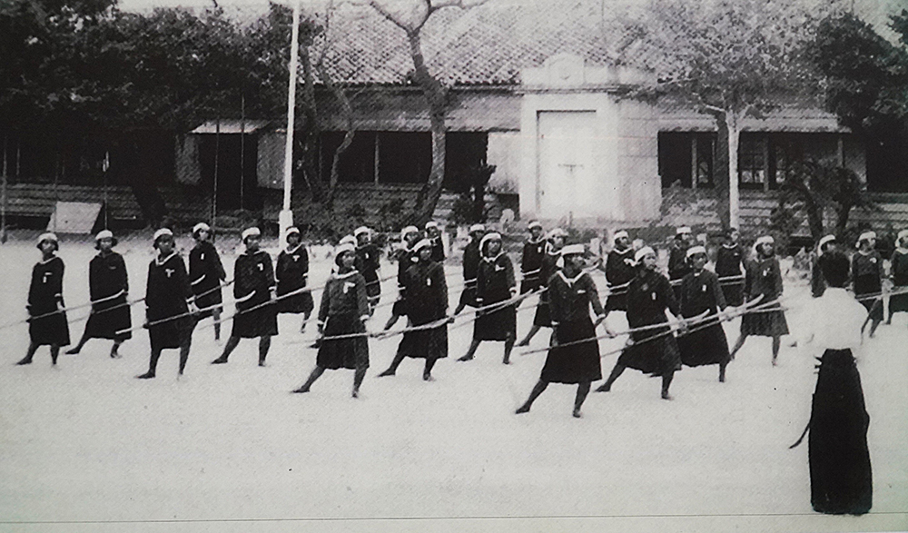 花徳小が保存していた昭和16年頃のなぎなた訓練の写真