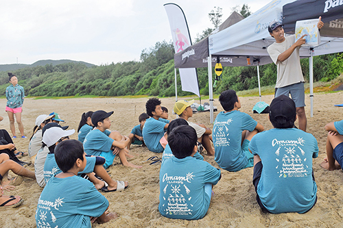 ナン(祖父母)、ワン(自分)、マガン(子や孫)の3世代が、奄美の豊かな自然や海を残し、次世代へつなぐことを願う子ども向け環境教育イベントで、今年3回目。環境学習、海の安全教室、サーフィン体験の3部制で、それぞれの専門家らが手ほどきした。