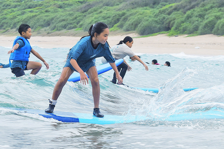 サーフィン歴1年目だという朝日中2年の今村緋那子さん(13)は「足幅を広くとアドバイスを受けてから乗りやすくなった。ビーチクリーンなどを心掛けながらこれからも奄美のきれいな海を守っていきたい」と笑顔だった。