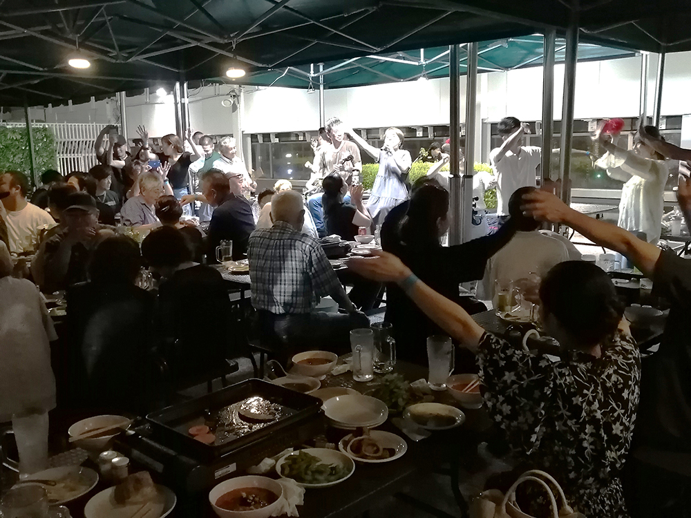 太陽の広場BBQ GARDENに六調が響き、多くが踊る(10日)