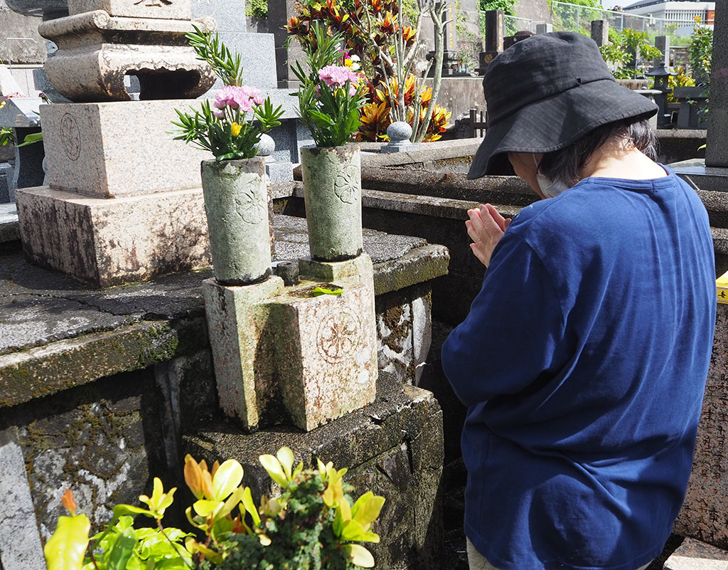 先祖の霊を迎えた里和子さん(82)は、「お墓をきれいにし先祖を迎えるため毎年必ず来ている。毎月1日と15日も欠かさず墓参りをしている」と話した。