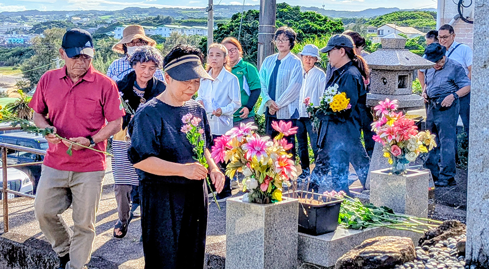 同犠牲者たちにはゼロ歳児5人を含む77人の子どもたちも含まれる。武州丸の悲劇を風化させてはいけないと、継続している「武州丸と平和を考える会」(幸多勝弘代表)や一部遺族、町地域女性団体連絡協議会の会員ら含め23人が参列した。碑前に全員で線香や花を手向け、黙とうして冥福を祈った。