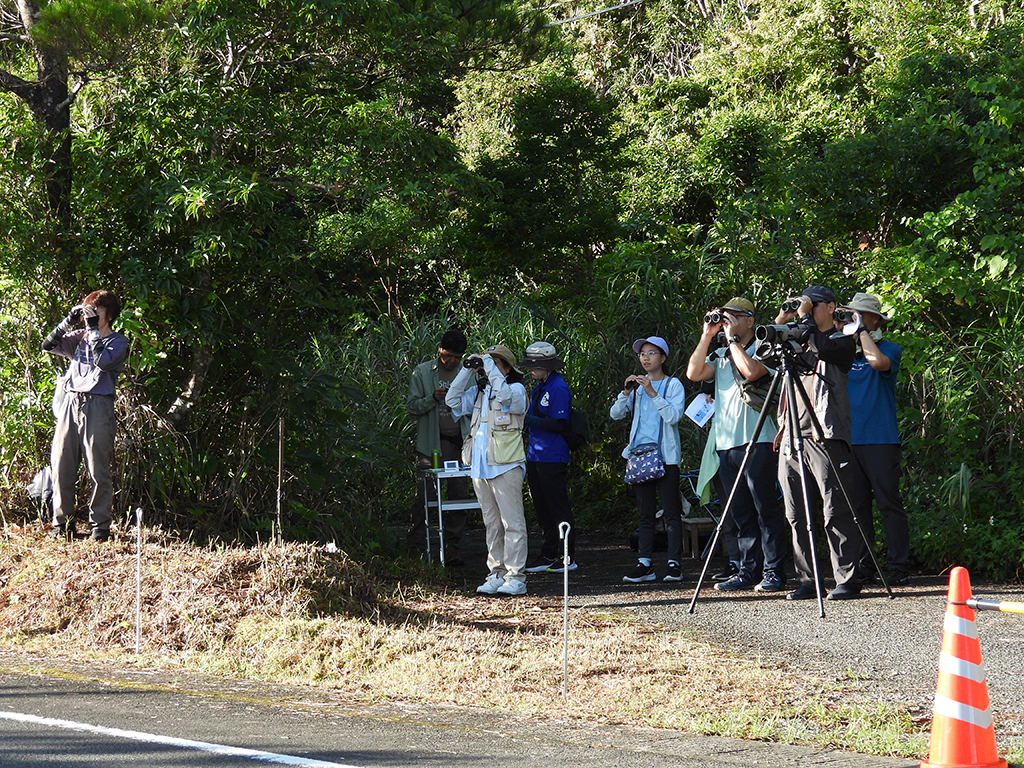 案内役を務めた野鳥の会の岩元さよ子さん(66)によると、温暖化の影響で渡りの時期が遅くなっており、今年は10月10日頃まで楽しめるのではないかという。