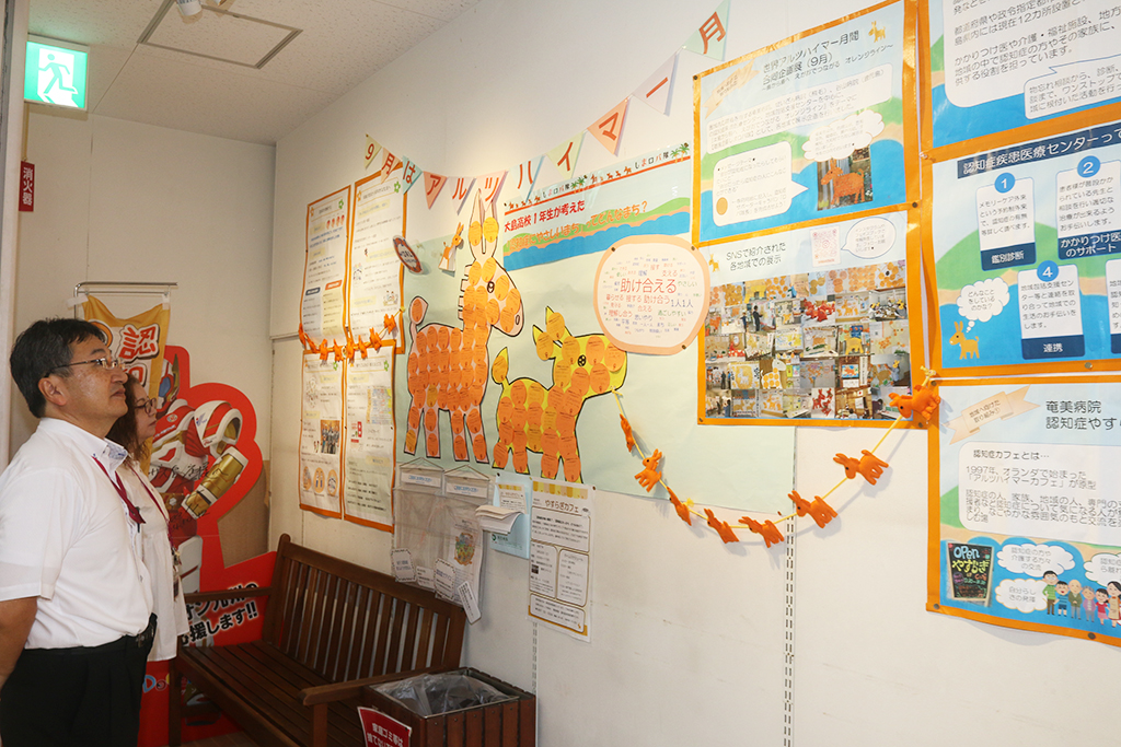 啓発展示に協力し受け入れた谷川店長は「個人的にも奄美から遠く離れた県外で母親が1人で暮らしており、居住地の地域包括支援センターに相談するなど身近に感じている。買い物に1人で来店される高齢者の中にも気になる方がいらっしゃるだけに、認知症への正しい理解が進み、お互いに助け合うことで住みやすくなるのではないか」と語った。