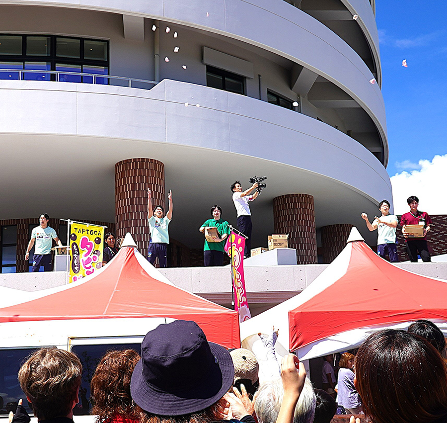 式典後は、五輪メダリストら徳洲会体操クラブの実演や餅投げ、ステージイベント、屋台出店などでにぎわいを見せた。