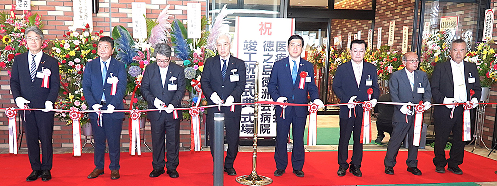 祝賀会で東上理事長は「子宝の島で安心して出産・子育てができる医療環境を整えたい。国内外に医療を届ける徳洲会の理念をここからさらに広げたい」とあいさつ。塩田知事も「幼少期は島に小さな診療所しかなく、けがで鹿児島市まで船で通った経験がある。新病院の誕生は子どもたちに質の高い医療を届ける大きな一歩」と述べた。