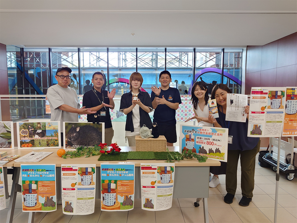 【徳之島】徳之島町は22日、東京都江東区の武蔵野大学キャンパスで、学生がパッケージデザインを手がけた「アマミノクロウサギ共生たんかんジャム」の販売会を開いた。用意した30個はまたたく間に完売し、交流の深化とともに、世界自然遺産・徳之島の希少野生動物との共生取り組みへの理解を広げた。