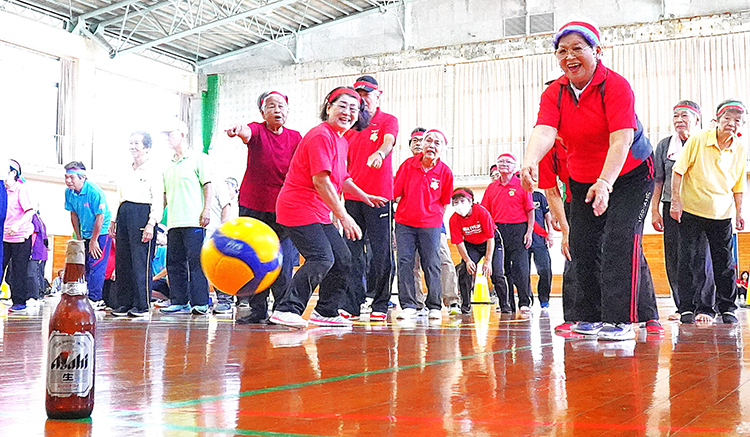 【徳之島】第49回「ゆめ・ときめき徳之島町ねんりんスポーツ大会」(町高齢者クラブ連合会主催)が27日、同町体育センターで開かれた。最年長選手の97歳を頂点に元気印の高齢者約300人が参加。歓声が響く和やかな雰囲気の中、地区対抗戦の多彩なスポーツゲームを楽しみながら交流した。