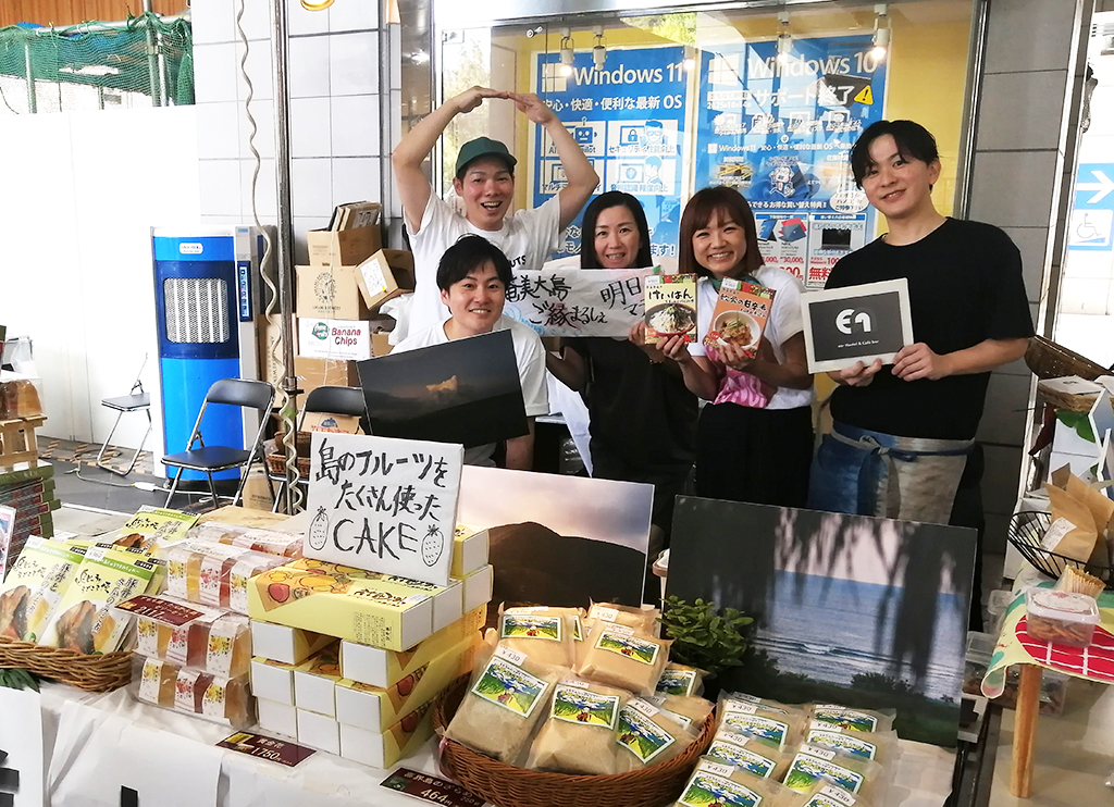 主催したのは奄美市名瀬にあるen―Hostel&Cafebar代表取締役の永田陽祐さん。商社での海外勤務で培ったノウハウを生かし、海外のマルシェのように人々が楽しく集える場所を提供したいとの思いでゆかりの店に声掛けした。写真展示、映像などで演出し、奄美を好きになってくれることを目指して「ご縁まるしぇ」と命名して魅力的な空間が出来上がった。シマ唄でも奄美の魅力を伝えようとスタッフの一人、豊山貴士さんが連日披露した。9月30日には、隣接する慶応義塾大学卒でこの秋から英オックスフォード大学へ留学する成瀬茉倫さんが「特別ライブ」を開催。シマ唄などを熱唱し、奄美の風を吹かせた。