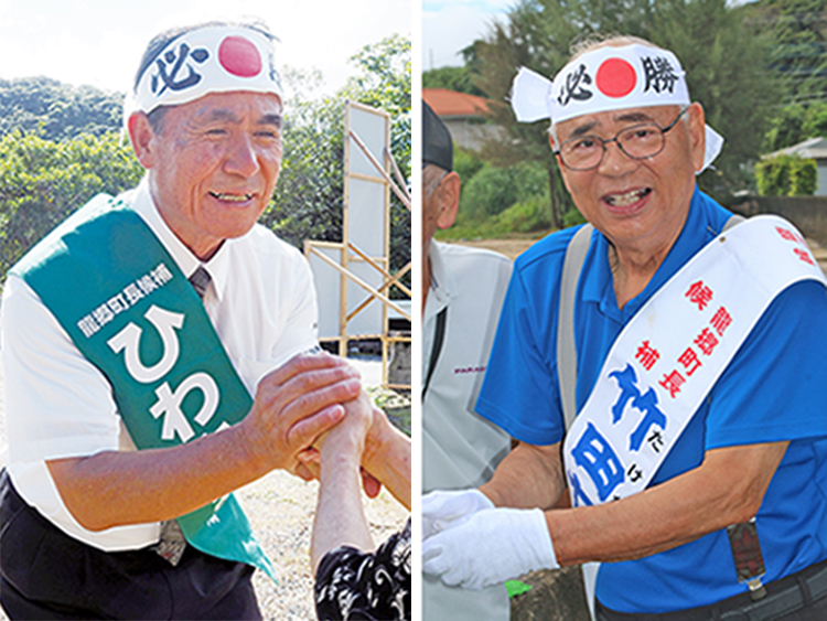 任期満了に伴う龍郷町長選挙は26日投票、即日開票される。立候補しているのは、現職で3期目を目指す竹田泰典氏(73)=瀬留=、新人で会社経営の樋脇昭和氏(67)=中勝=(届け出順)の2氏。21日の告示以降、雨天や曇り空が続いた中、選挙戦最終日の25日は時折青空が広がり日差しが届くなど天候に恵まれ、両陣営はそれぞれのスタイルで最後の訴えに声を枯らした。投票率の低下が懸念されるとして町政への関心、投票を呼び掛ける候補者もいた。