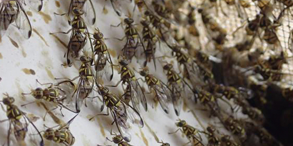 セグロウリミバエの防除対策では不妊虫放飼を含めた広域での防除体制整備を提案した(沖縄県で行われている不妊虫の増殖=沖縄県提供写真=)
