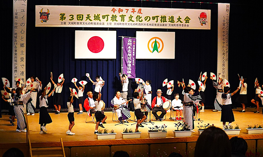 大会は、推進会議(会長・森田弘光町長)の再編後3回目。前身の「町教育文化振興の町推進会議」が1989(平成元)年に設置されて以来、実質37年目となる。今回は西阿木名地区推進協議会(仲恵会長)が主管し、家庭・学校・地域・事業所の関係者らが参加した。