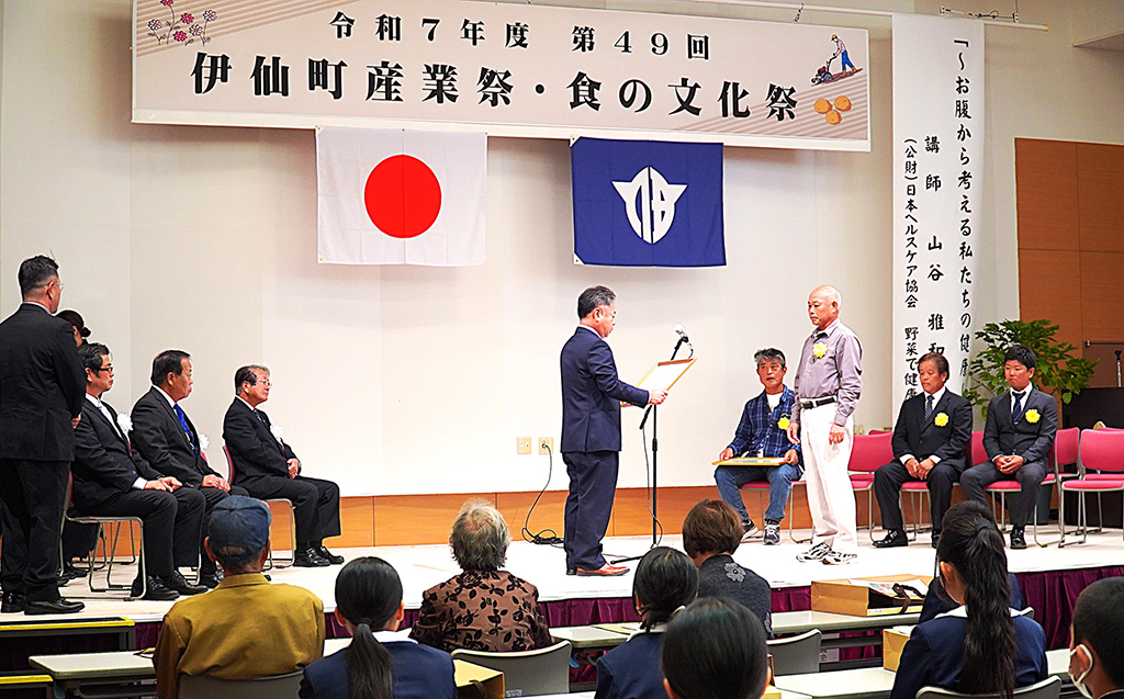 伊仙町では午前9時半の開会行事に続き、日本ヘルスケア協会の山谷雅和氏が「お腹から考える私たちの健康」と題して特別講演。栄養と体の関わりについて、実生活に沿って分かりやすく説明した。この後、町の優秀農家など各種表彰が行われた。