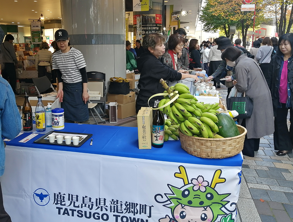 同イベントは、伴走型小規模事業者支援推進事業補助金を活用したもの。龍郷町商工会が主催し、有楽町駅前の東京交通会館1階の屋外イベントスペースであった。奄美からは、㈱あいかな、㈲高野食品、㈲山田酒造、町田酒造㈱東京事務所、龍郷町(島育ち産業会館)が参加した。