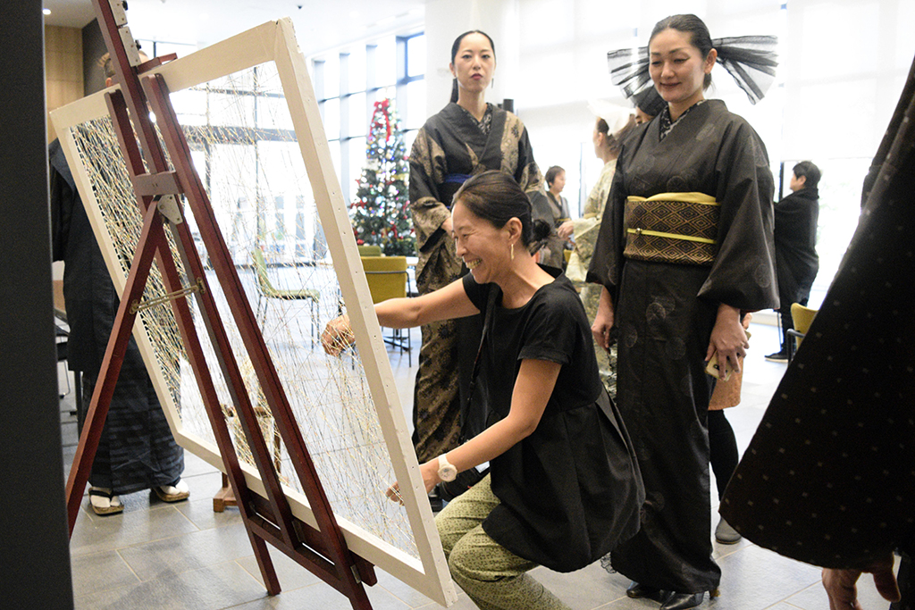 廃糸を使った50周年記念アートにも大勢の人が関わった