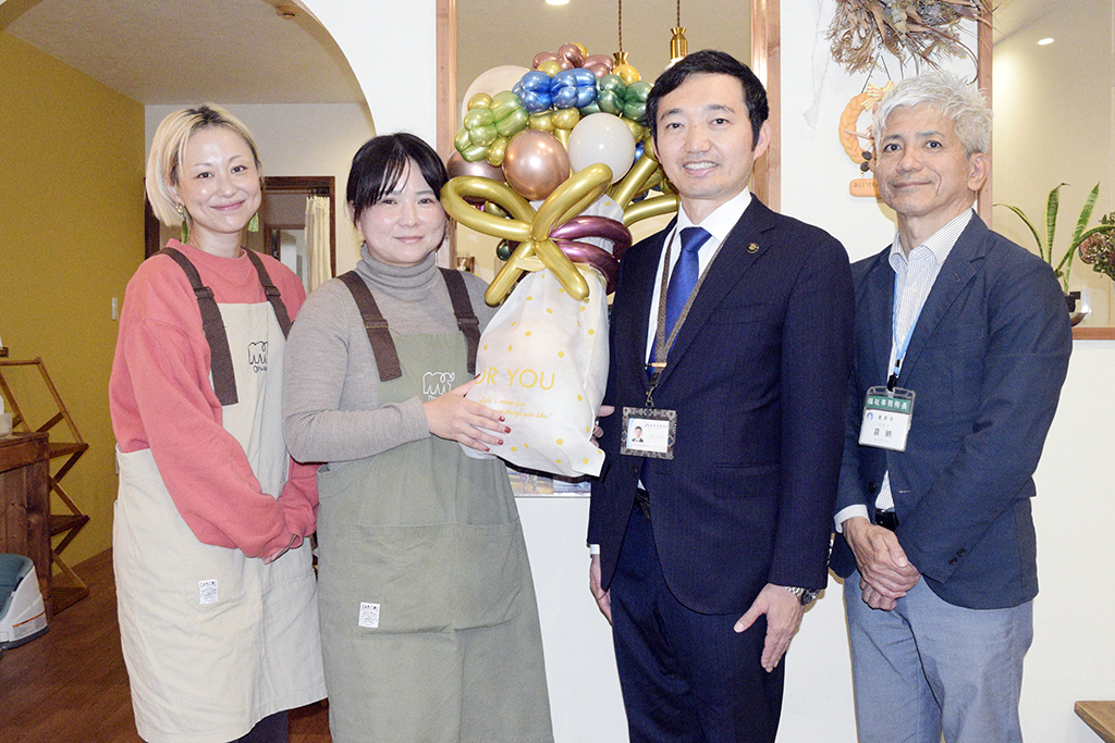 この日は、安田壮平奄美市長らが事務所を訪問。業務開始を祝いバルーンフラワーが贈られた。安田市長は「手を上げてくれる人がいるのかが心配だった。2人の思いが実現できるようサポートしていきたい」と期待した。