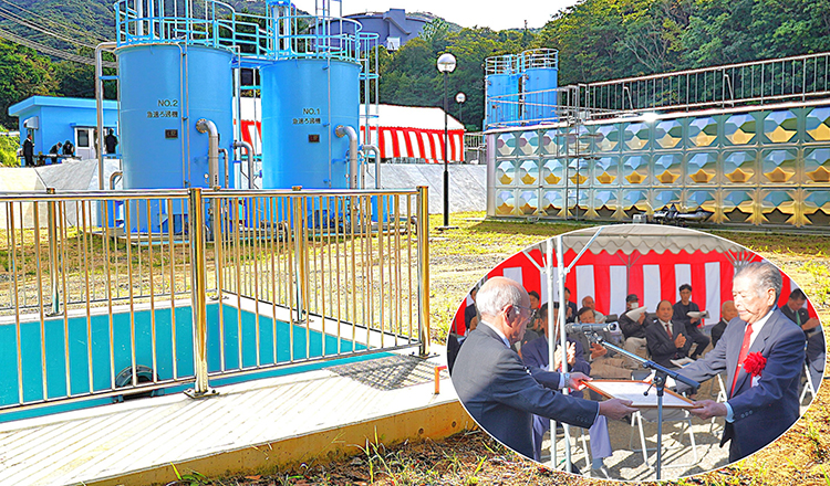 竣工式には町議会や各集落区長、施工業者ら関係者約40人が出席。森田弘光町長は「急速ろ過方式の導入により、赤土流出や原水濁度上昇といった水質悪化問題を根本から解決できる。町民の皆様に安心・安全な生活用水を継続して供給できる環境が整った」と述べた。