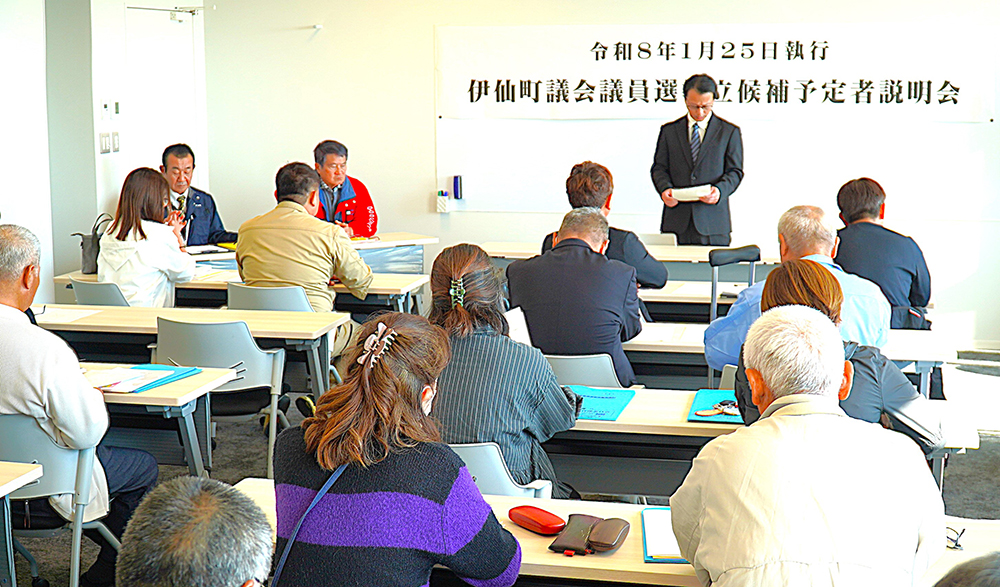 【徳之島】伊仙町選挙管理委員会(德宏二委員長)は16日、任期満了(2026年2月2日)に伴い1月20日告示、25日投開票の同町議会議員選挙への立候補予定者説明会を町役場会議室で開催。定数14に対し現職12人・元職1人・新人3人の計16陣営の本人や代理など関係者が出席した。