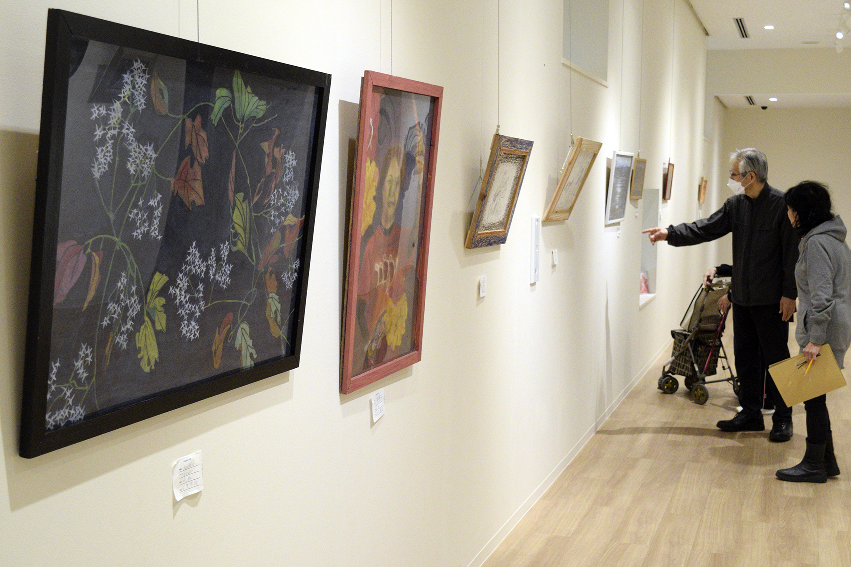 名瀬美術協会(久保井博彦会長、会員29人)会員の作品を集めた「第38回同協会展」が17日、奄美市名瀬のアマホームPLAZA2階で始まった。油彩や水彩、鉛筆画など、会員の描いた力作48点が展示。地元画家たちの作品が鑑賞者の目を楽しませている。21日まで。