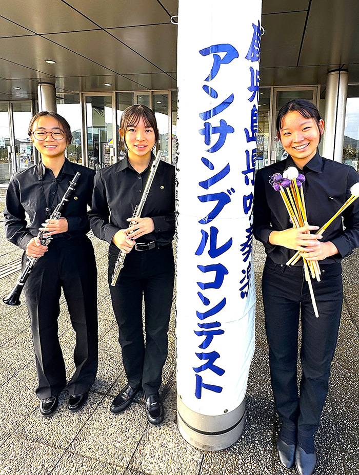 管打三重奏のメンバーは、部長の井凜音さん(マリンバ)、嶺井結愛さん(フルート)、寺村香花さん(クラリネット)のいずれも2年生。井さんは「昨年惜しくも九州大会に届かなかった先輩方の思いも背負い、『結の島・徳之島』を感じてもらえる演奏を届けたい」と意気込みを語った。