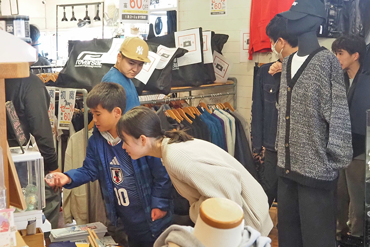 各店舗には福袋や新年ならではの商品が並び、店頭でPRするスタッフの声も飛び交った。通りには、朝から家族連れや若者たちが次々と足を運んでいた。