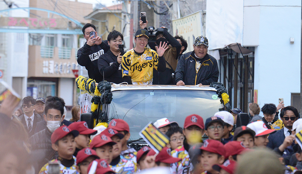 パレードに参加した和泊リリーズの村山大空さん(12)は「近本選手がすぐ近くにいてうれしかった。プロを目指して、これからも野球を続けていく」と語った。