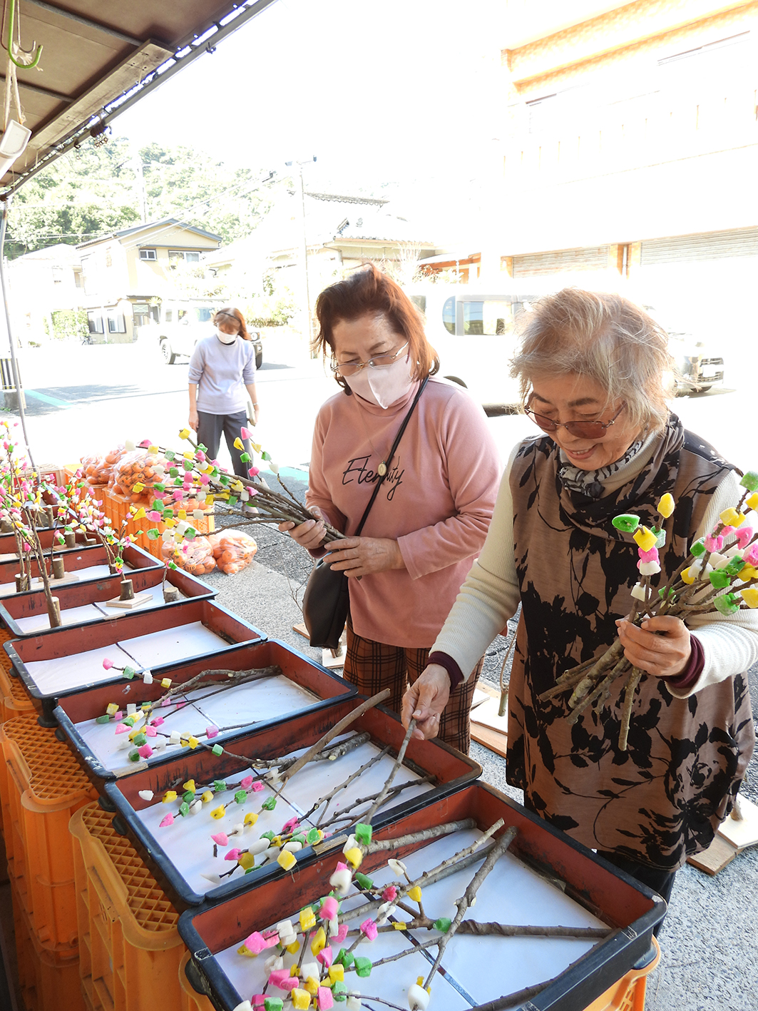 奄美大島北部と徳之島の一部地域に伝わる小正月の風物詩「ナリムチ」(成餅・餅花)が14日始まった。奄美市内の商店には、色とりどりの餅を「ブブ木」と呼ばれる木の枝に刺した縁起物の装飾が並び、訪れた人が次々と買い求めていた。