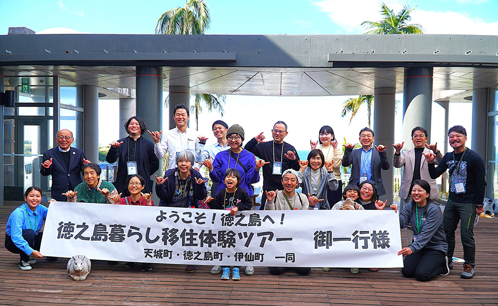 同ツアーは県産業人材確保・移住促進課が実施するふるさと定住促進事業の一環。県外在住者を対象に、2024年度から奄美大島・南薩の2地区で開始され、2年目となる今年度は徳之島と大隅の両地区で計画。徳之島地区には、家族連れの幼児から50代まで幅広い年代が参加している。