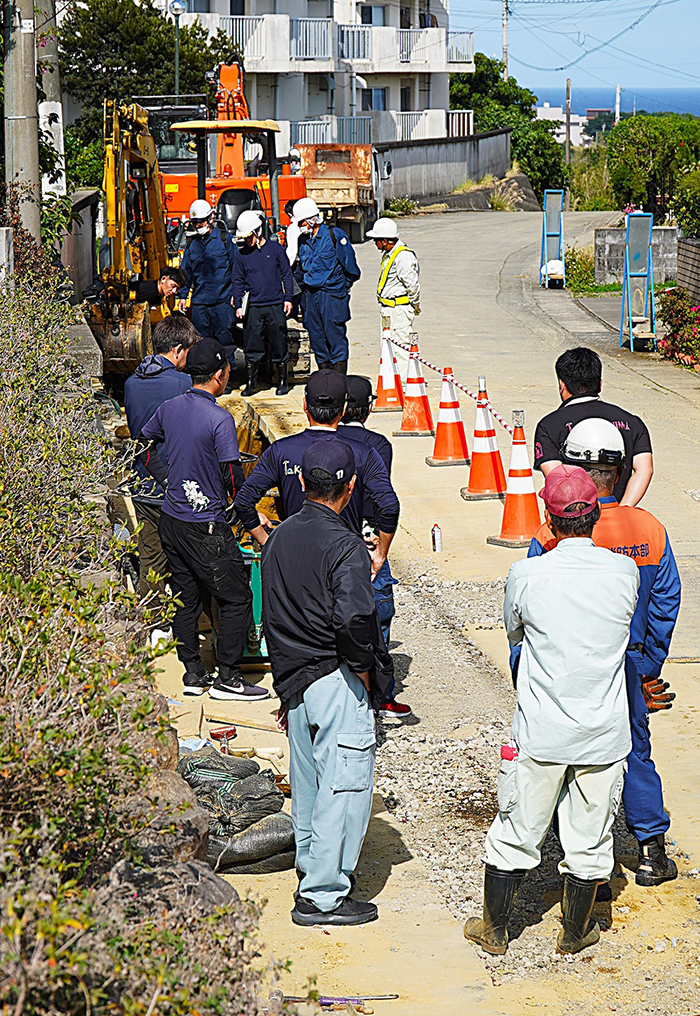 作業員男性の死亡事故が起きた徳之島町公共下水道工事現場=2月25日、同町亀津