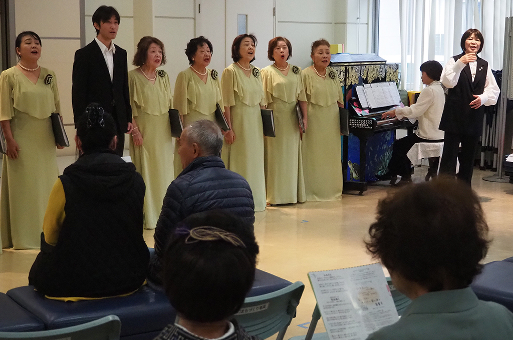同合唱団のミニコンサートも行われ、宮原海さんも特別出演。全14曲を来場者は楽しむとともに、最後には再度「花は咲く」を全員で合唱し幕を閉じた。
