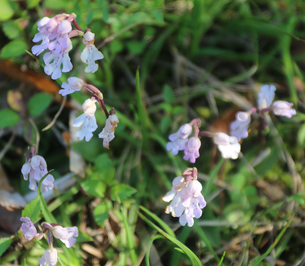 ラン科の多年草。白っぽい薄紫の花弁は小さく、背丈も10㌢もないほど。花期は2~4月で、環境省レッドデータリストの絶滅危惧Ⅱ類に指定されているほか、鹿児島県の準絶滅危惧種。九州南部から沖縄島に分布。花の形をチドリ(千鳥)に見立てたのが名前の由来とされている。