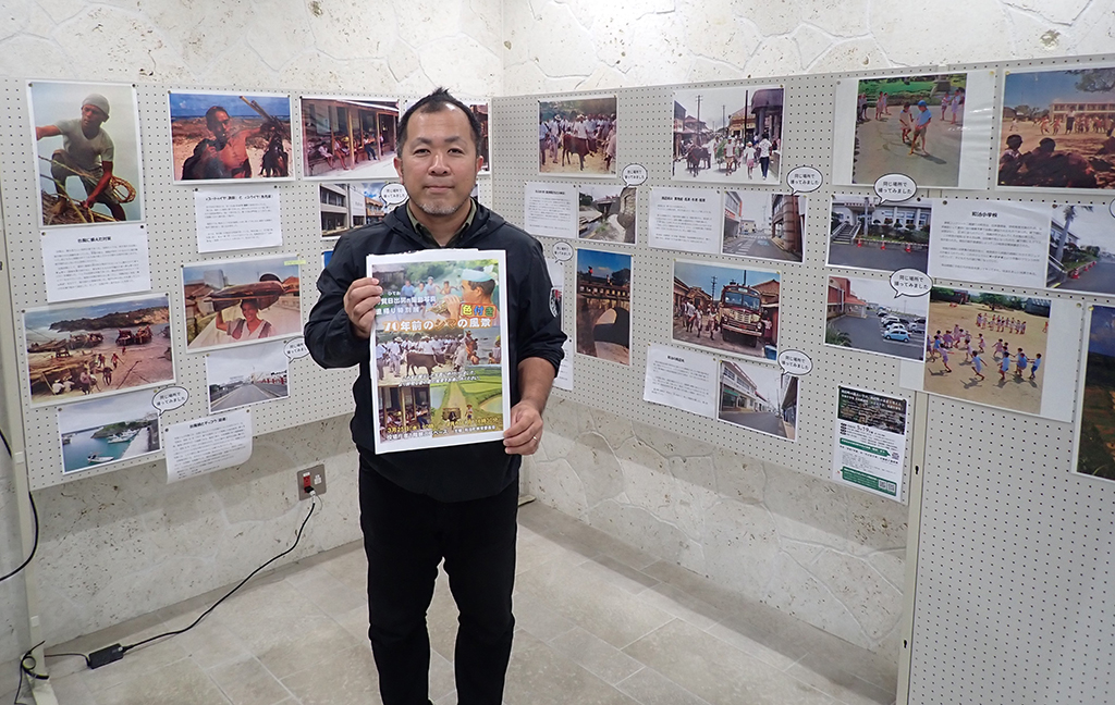 25日から「70年前のシマの色付き風景」をPRする和泊町教育委員会の太剛志さん(26日、和泊町役場)