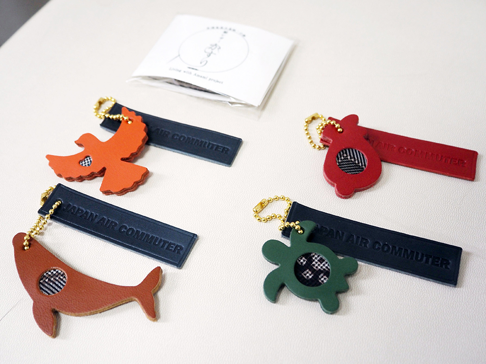 奄美群島などの離島を結ぶ日本エアコミューター(JAC)は1日、奄美に生息する希少動物をかたどった「奄美の生き物お楽しみチャーム」の機内販売を開始した。本革と本場奄美大島紬の端切れを使い、職人が丁寧に仕立てたキーホルダーで、売り上げの一部は島の動物保護施設に寄付される。地域の魅力発信と合わせて、希少動物の野生復帰に役立てる。